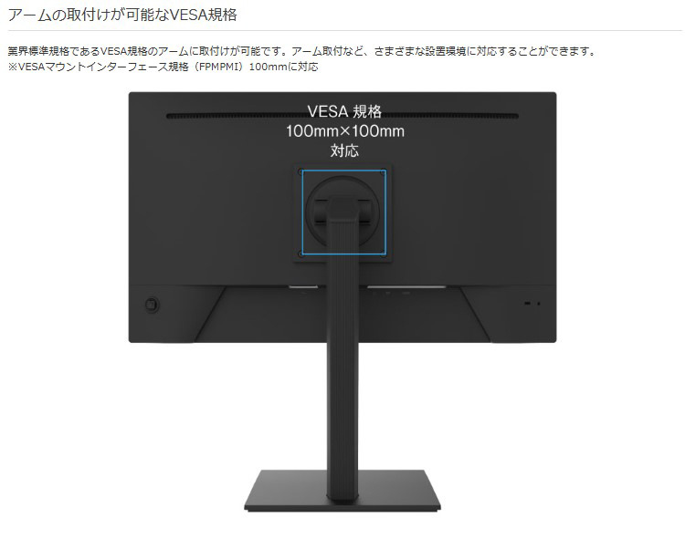 ※VESAマウントインターフェース規格(FPMPMI)100mmに対応