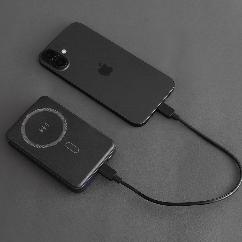 安全性に優れる「準固体電池」を採用した、容量10000mAhのワイヤレス充電対応モバイルバッテリーです。