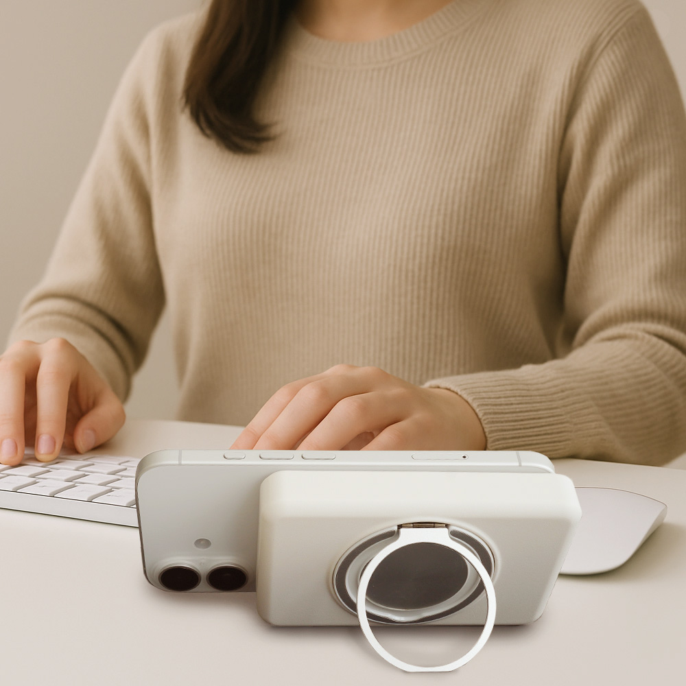 スマホリング一体型で、充電中も安定した状態でお使いいただけます。