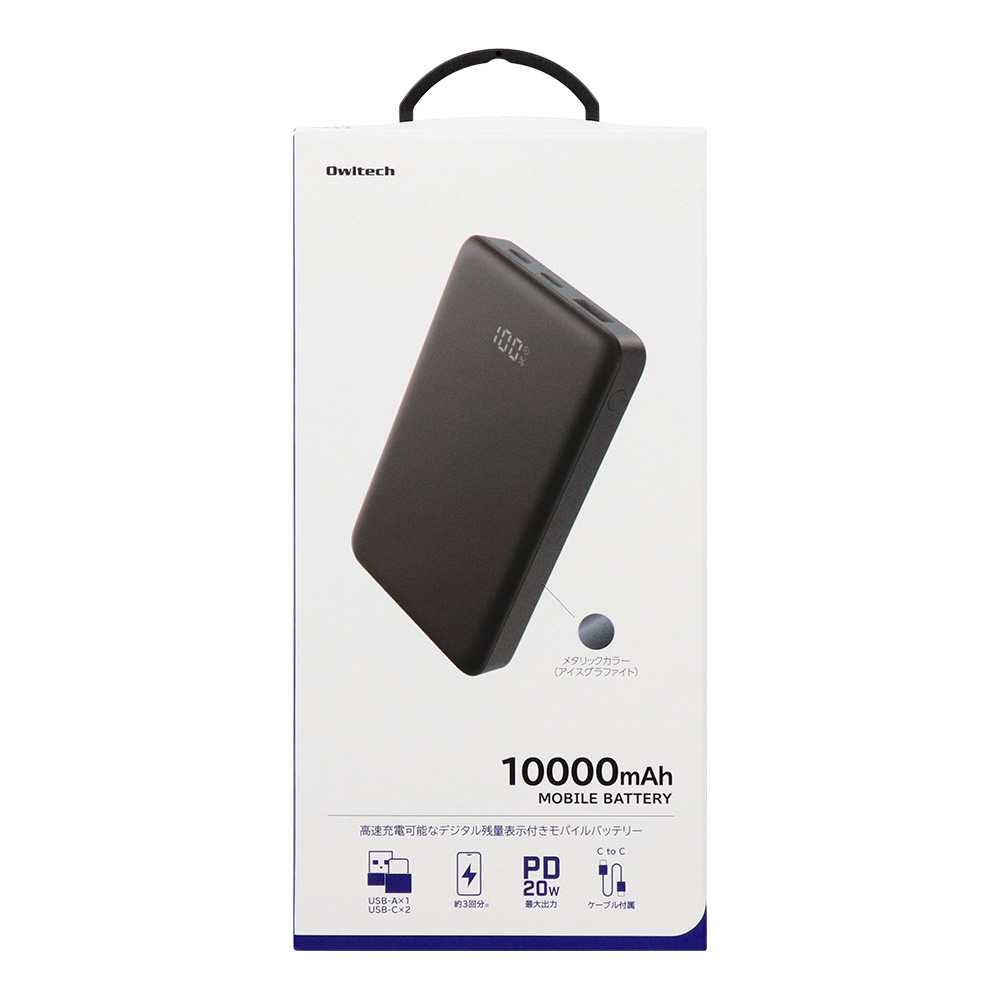 10000mAh 最大PD20W出力対応 USB Type-C入出力/USB Type-A出力 モバイルバッテリー アイスグラファイト OWL-LPB10028-GY