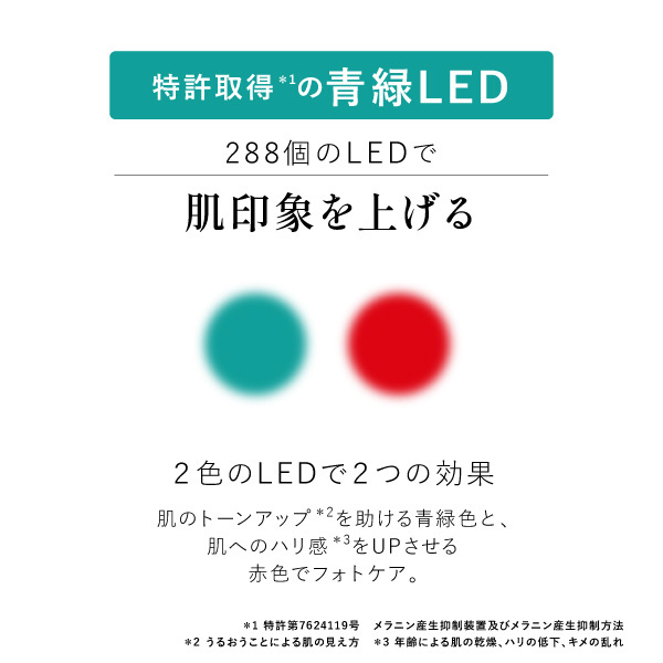 フォトケアには青緑と赤の2色のLEDを搭載し、肌の深いお悩みに対応します。
