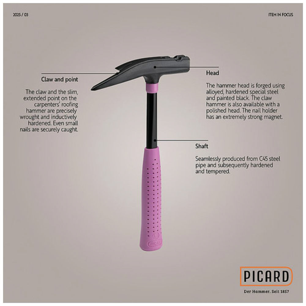 PICARD くぎ抜きハンマー Pinkハンマー 大工用ルーフィングハンマー、フラット仕上げ