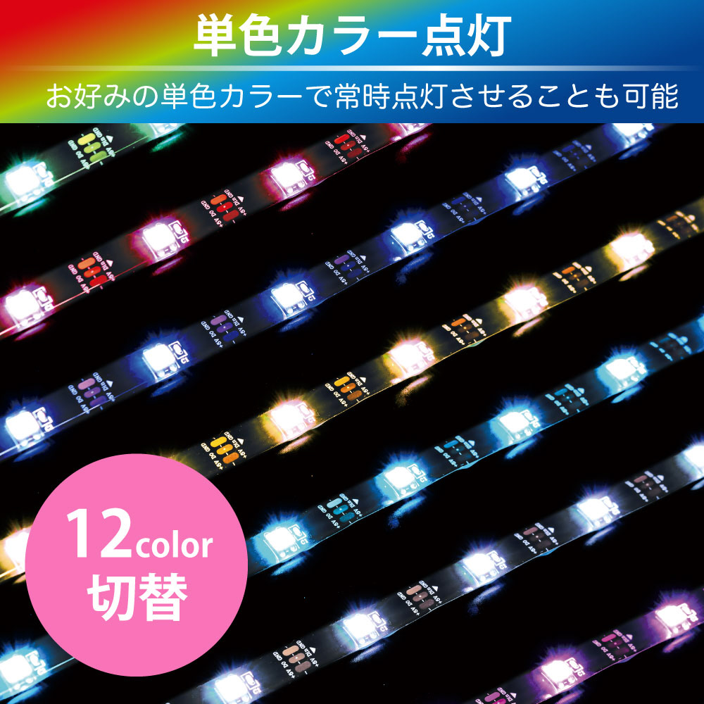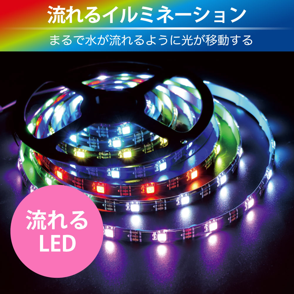 RGBでイルミネーションを楽しめるロングタイプのテープLED。安心・安全のUSB電源採用。