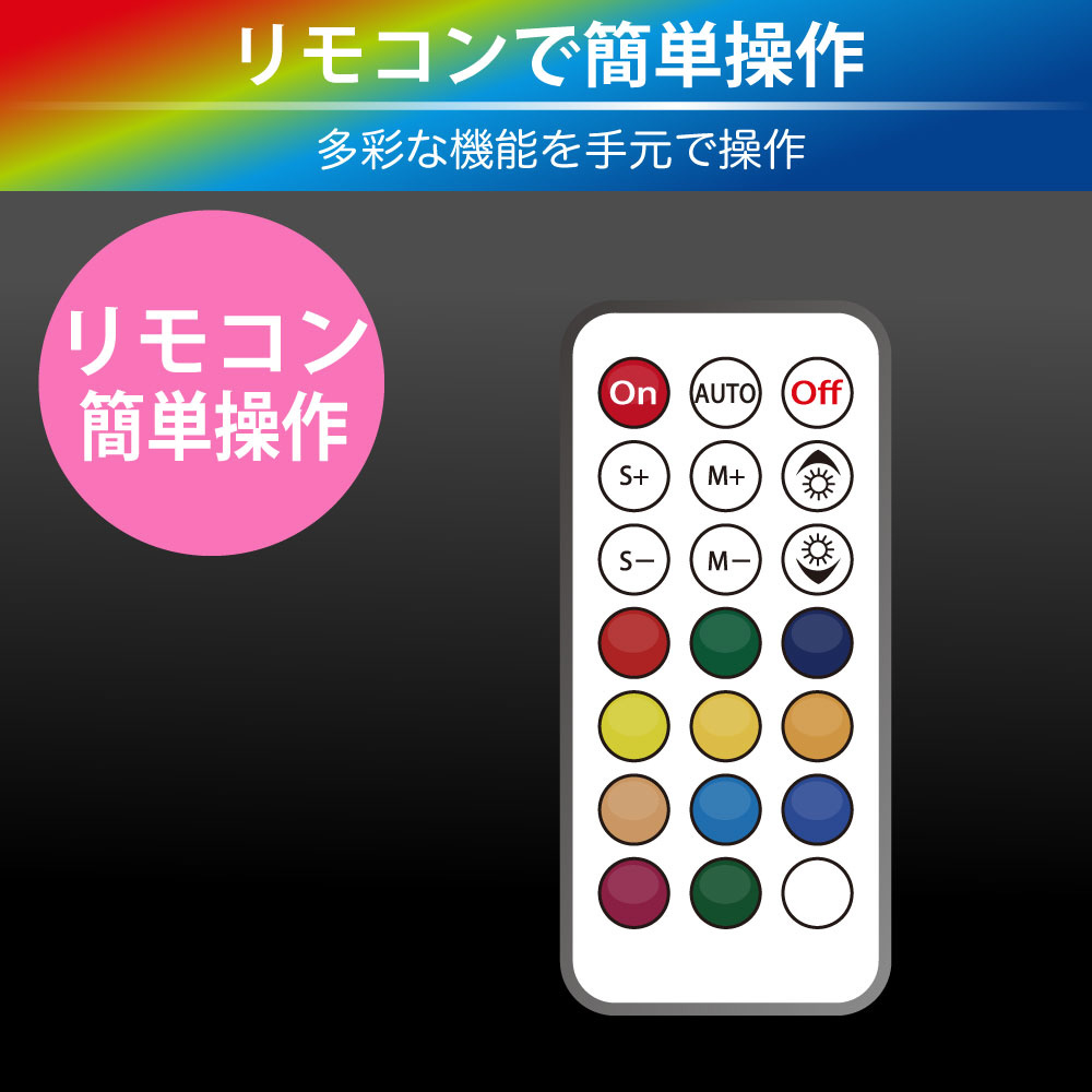 付属のリモコンを使えば、LEDテープの多彩な機能を直感的に操作できます。