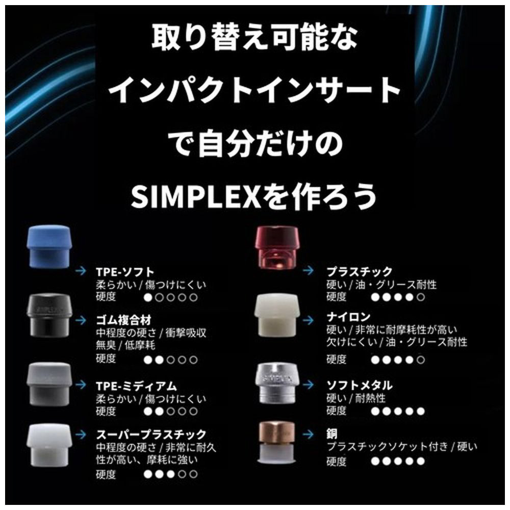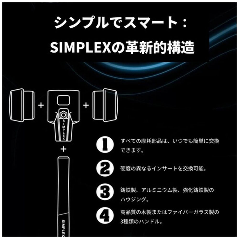 SIMPLEXスレッジハンマーは、スーパープラスチック製インサート(白色、中程度の硬さ、耐久性あり)とナイロン製インサート(白色、硬く、耐摩耗性・耐油性に優れ、低温でも欠けにくい)を備えています。