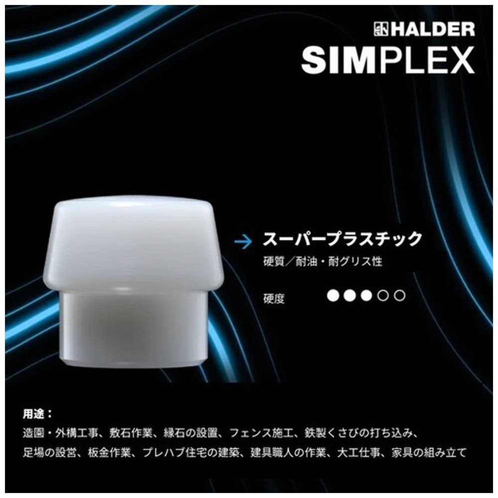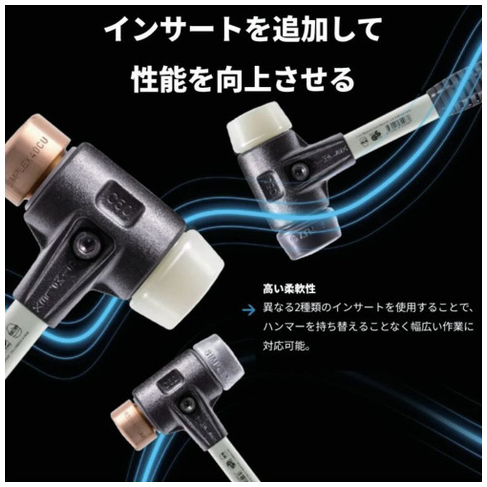 ■SIMPLEXスレッジハンマーは、スーパープラスチック製インサート(白色、中程度の硬さ、耐久性あり)とナイロン製インサート(白色、硬く、耐摩耗性・耐油性に優れ、低温でも欠けにくい)を備えています。