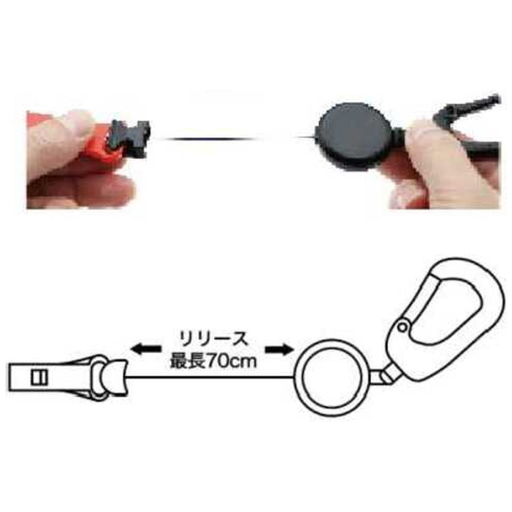カラビナとリールが付いているので、衣服やリュック、登山用ザック、ベルト等に取付け可能。