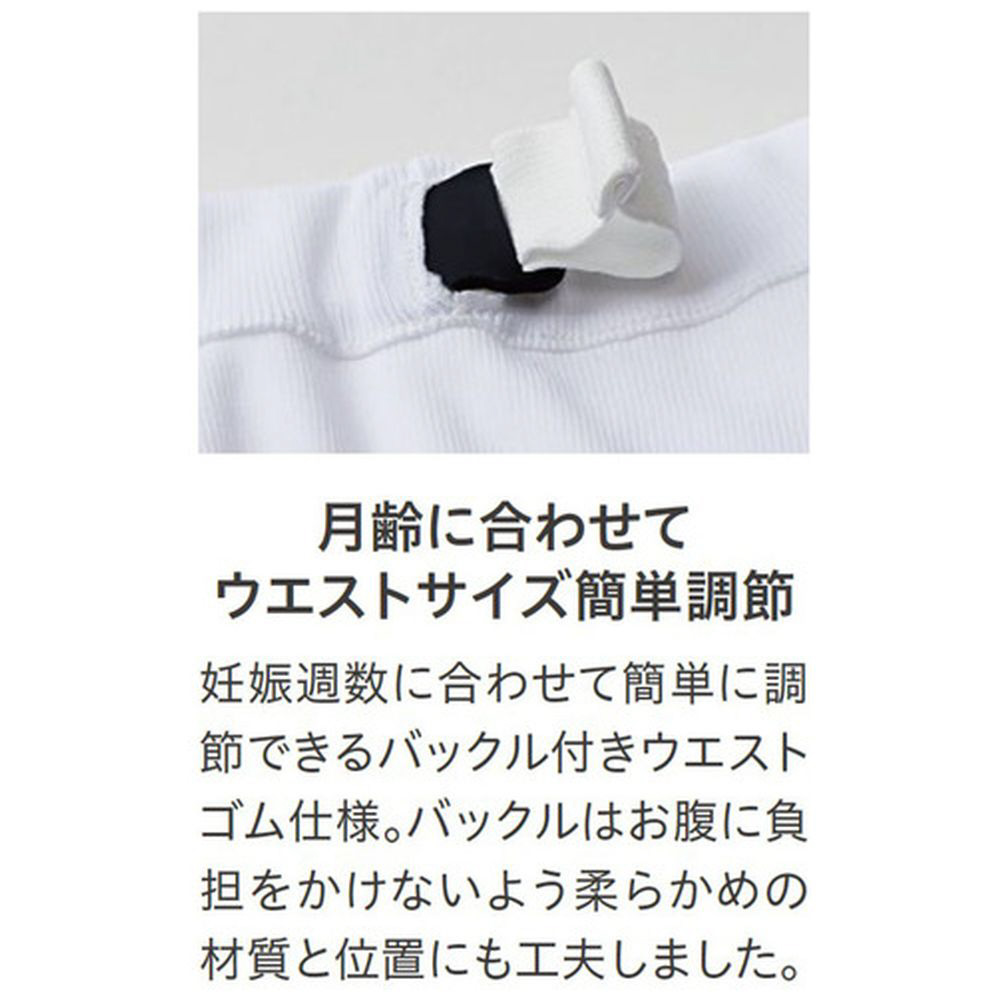 ■ウエストはバックル付きゴム仕様で、妊娠週数に合わせて簡単に調整可能です。