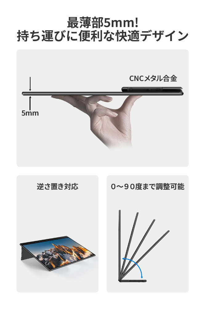 QLED(量子ドット技術)を採用した15.6インチの2Kモバイルモニターです。