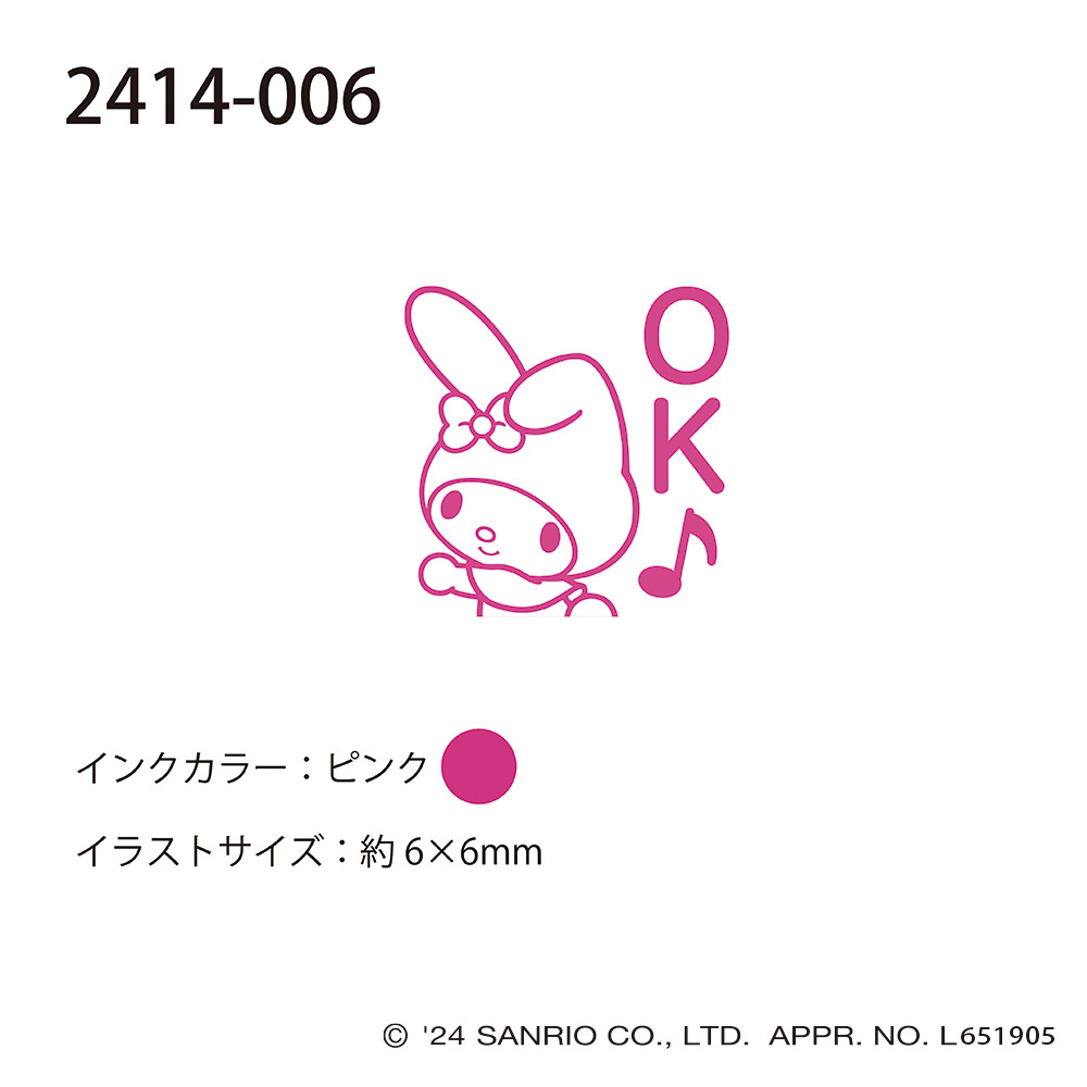 サンリオキャラクターズワンポイント浸透印 マイメロディ OK 2414-006