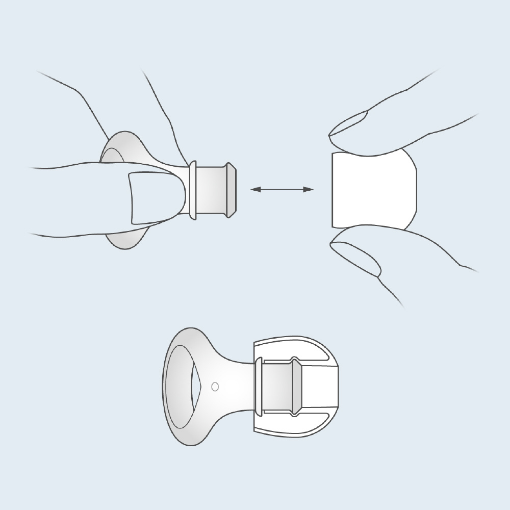 一般的なイヤーピースと比較して耳のより奥の広いエリアでフィットするため密閉性が高く、確かな遮音性能と落下防止を両立します。