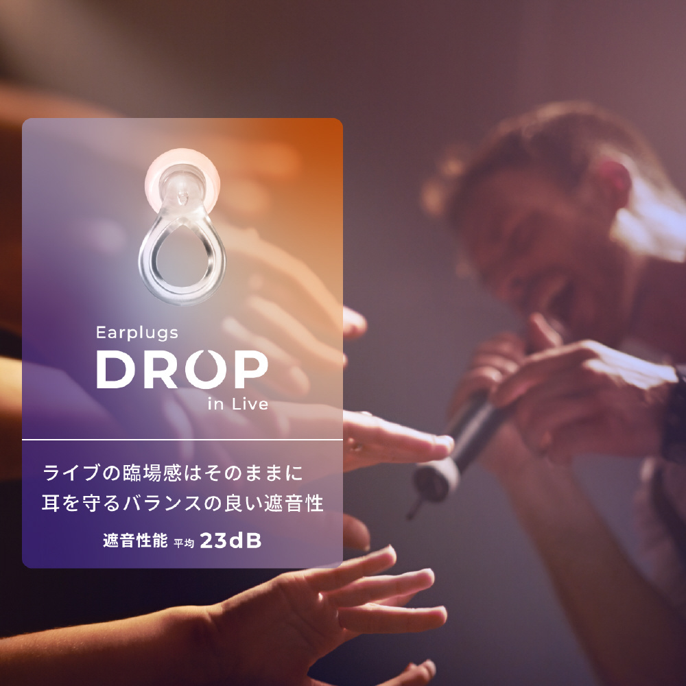 ○その瞬間を、研ぎ澄ます。守りながら楽しむイヤープラグ「DROP in Live」。