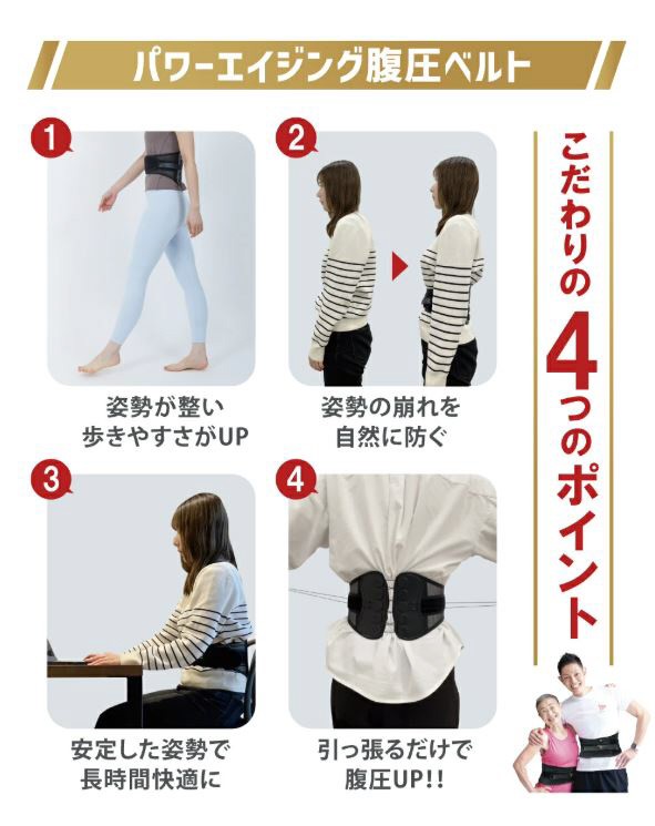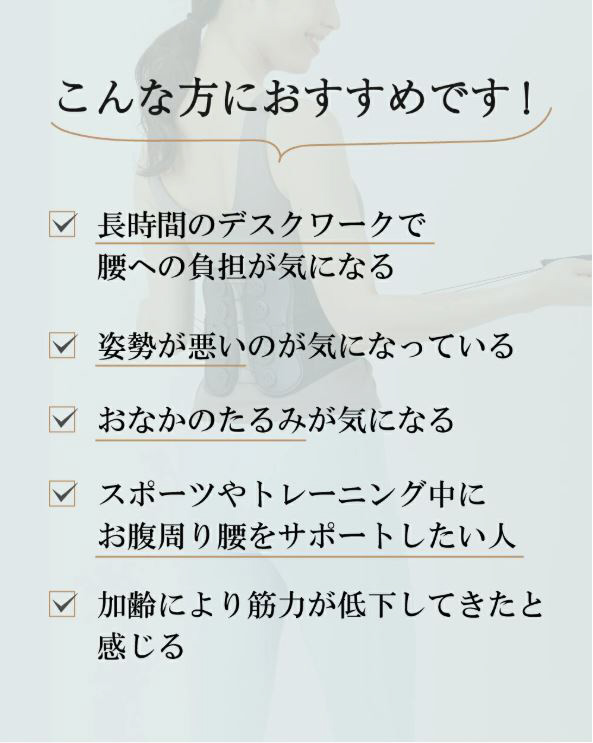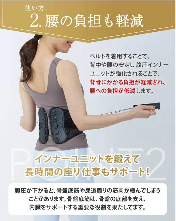 着用するだけで背筋、背骨を支える腹部を強化、