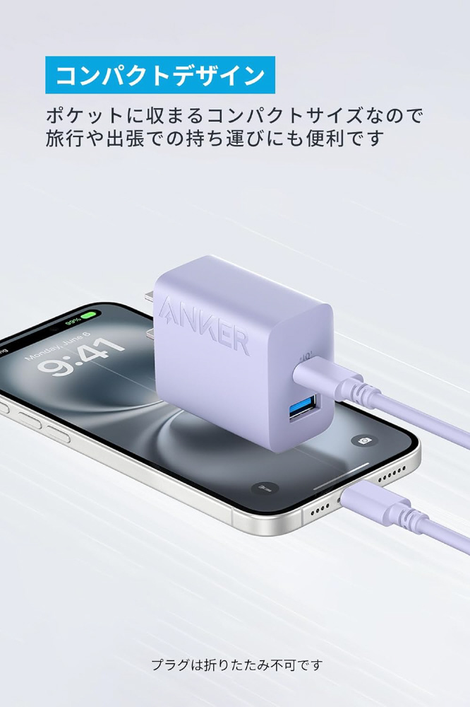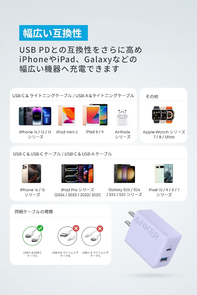 Anker Charger (20W 2-port) with USB-C & USB-C ケーブル 2個セット パープル B23481Q1 [USB Power Delivery対応 /2ポート /20W]