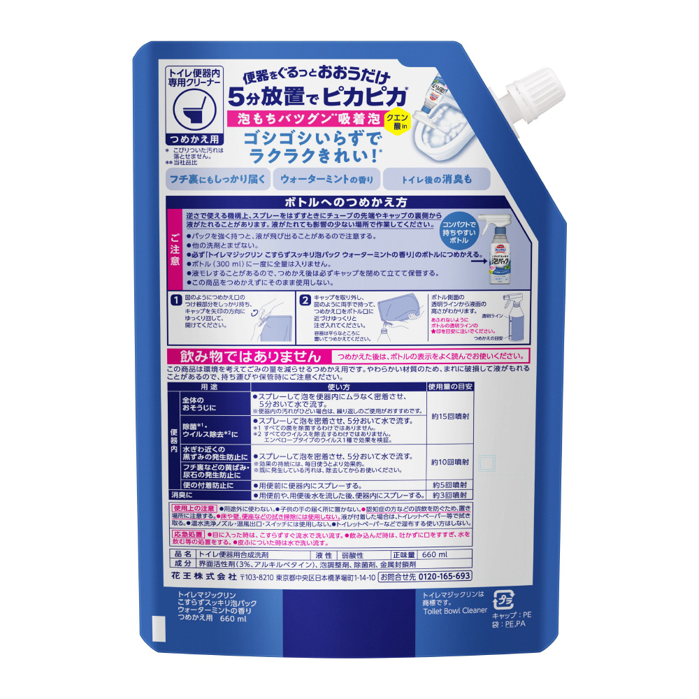 トイレマジックリン こすらずスッキリ泡パック ウォーターミントの香り つめかえ用 660ml