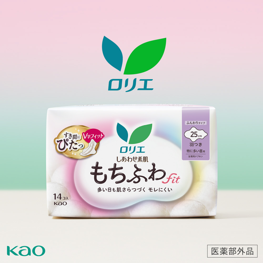 新感覚!もちふわクッションとV字フィットがすき間にぴたっ もちふわfit 多い日でも肌さらつづく、モレにくい!●もちふわクッションがからだにフィット。肌にふわわんとしたつけ心地●瞬間吸収で、ドッと出てもベタつきにくい●V字フィットで、おしりのすき間にぴたっ。後ろもゴワつきにくい●無香料(医薬部外品)