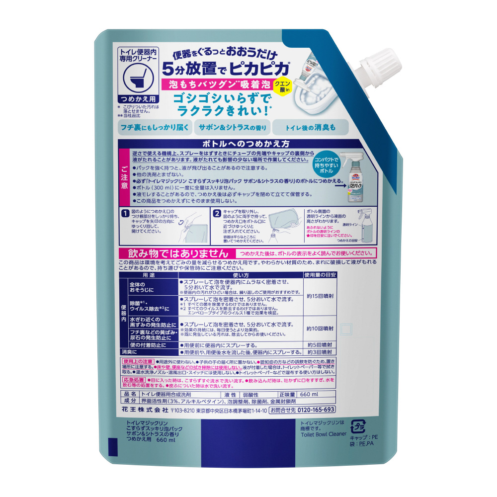 トイレマジックリン こすらずスッキリ泡パック サボン&シトラスの香り つめかえ用 660ml