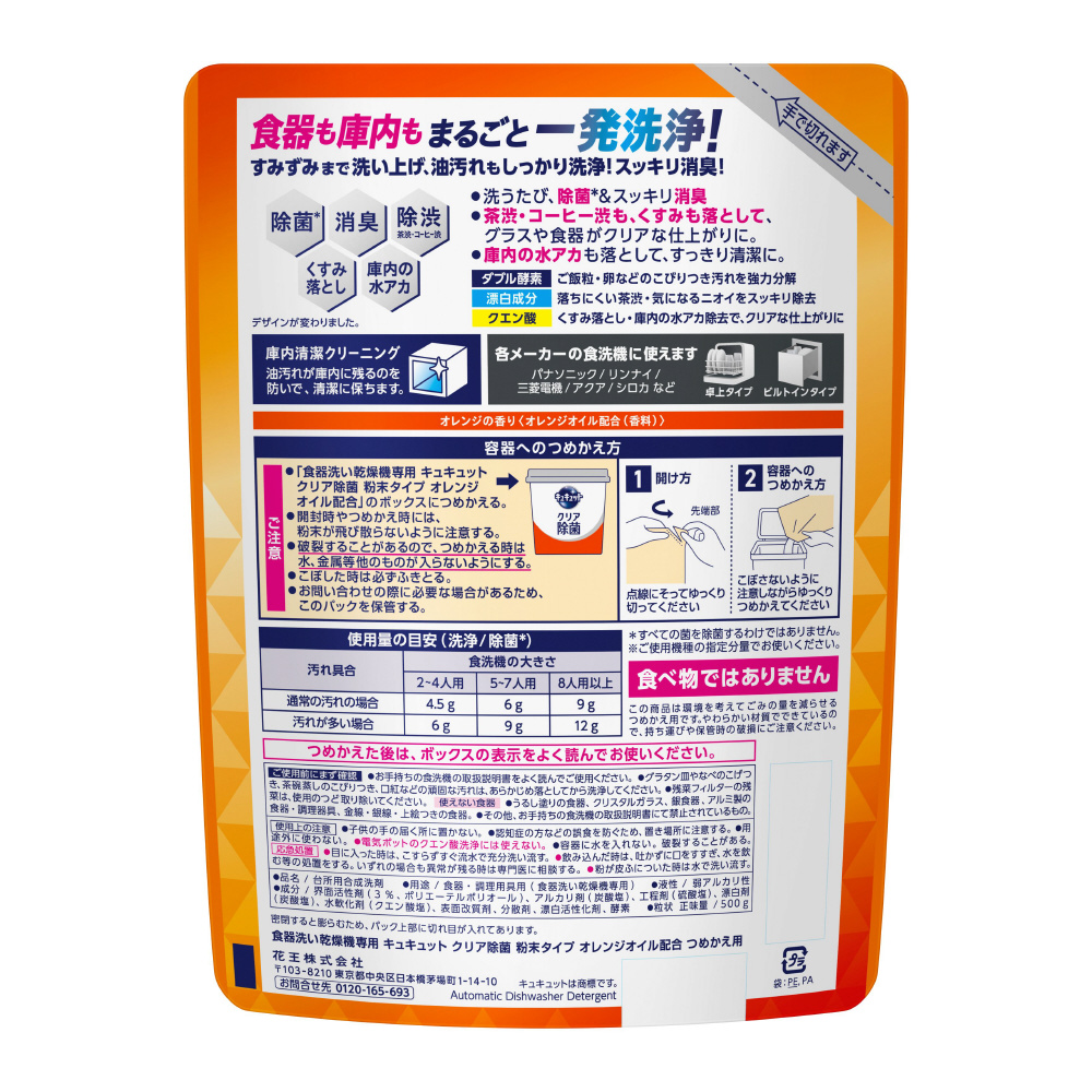 食器洗い乾燥機専用 キュキュットクリア除菌 粉末タイプ オレンジオイル配合 つめかえ用 500g