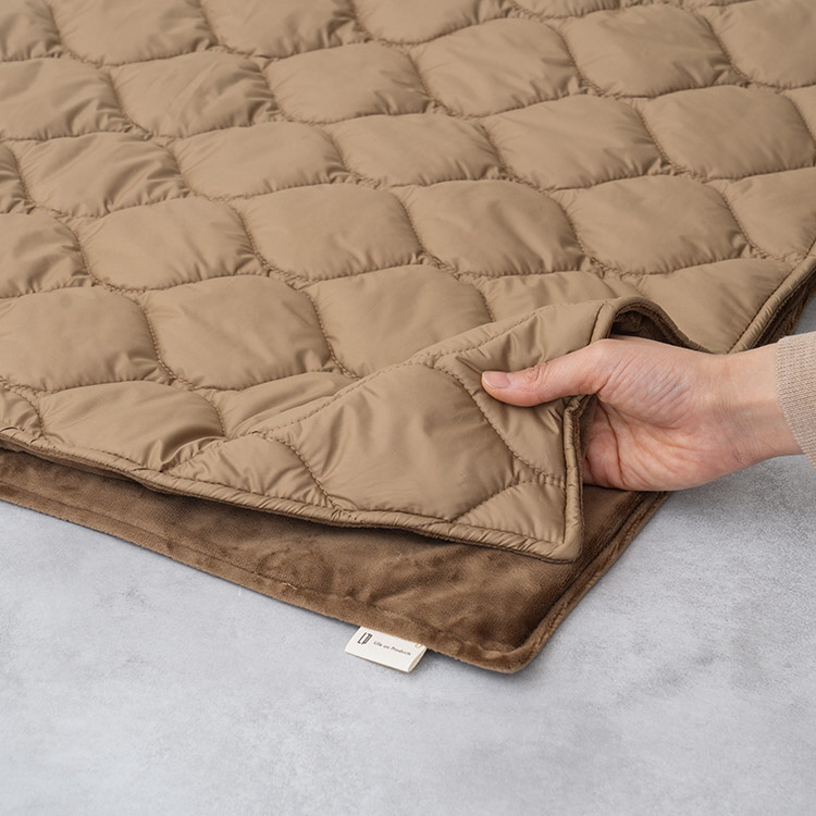 表地キルト素材、裏地は肌触りなめらかなボアを採用。首下から足まで入るサイズ感ながら、軽い点が魅力。手洗いOKでいつでも清潔に使える点も◎。