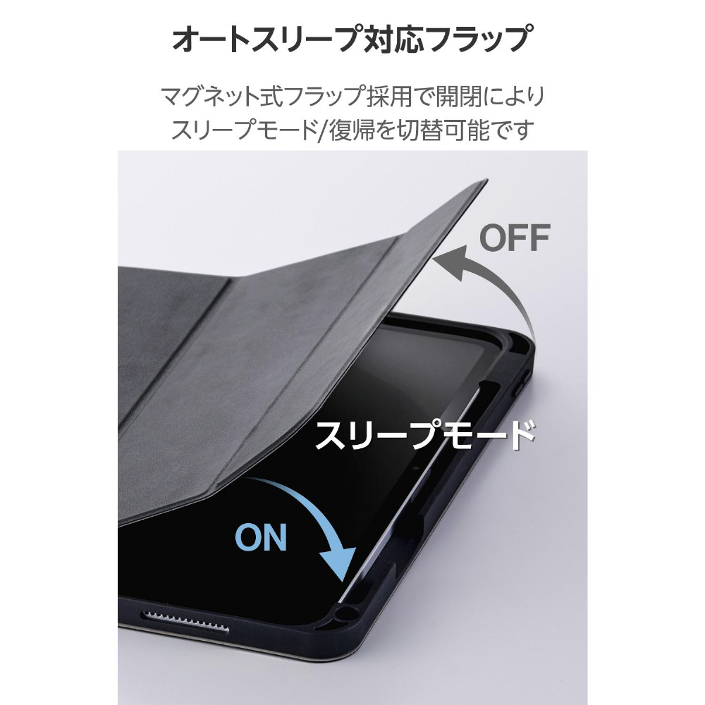 11インチiPad Pro(M5/M4)用 フラップケース 衝撃吸収 Pencil収納 スリープ対応 ブラック TB-A25PMSABK