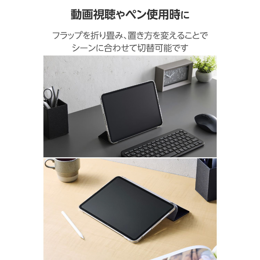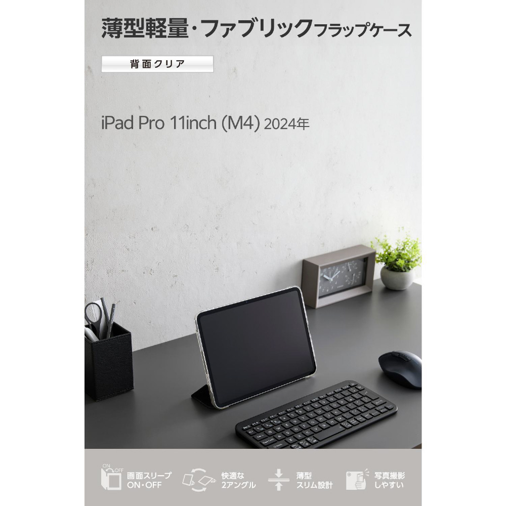 11インチiPad Pro(M5/M4)用 フラップケース 薄型軽量 ファブリック 背面クリア ブラック TB-A25PMWVCBK