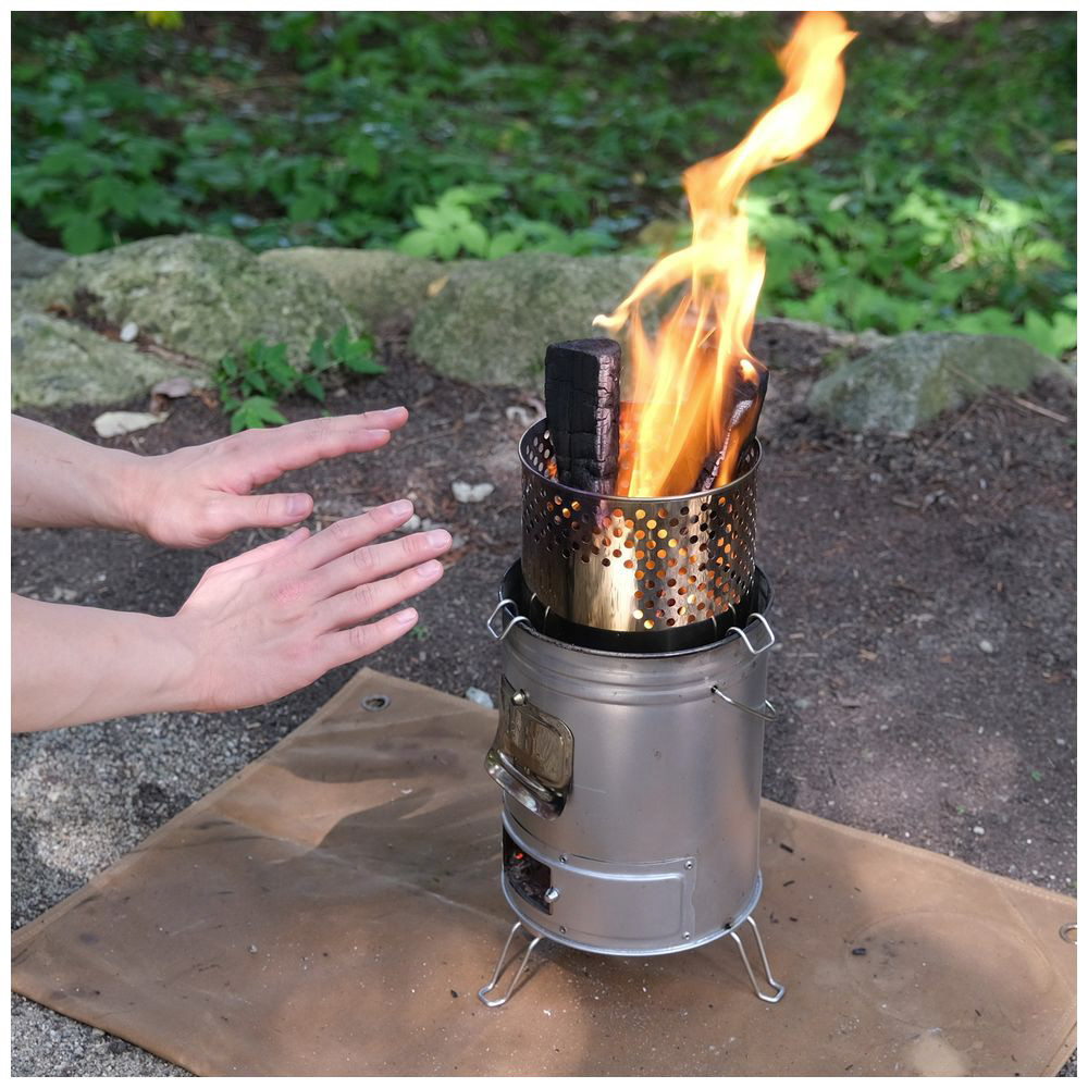 缶ストーブにセットして火力と安定性を大幅に向上させます