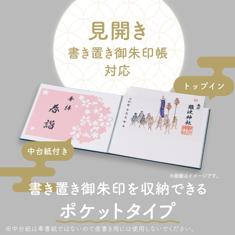 見開きサイズの切り絵・書き置き御朱印をきれいに収納できるポケットタイプの御朱印帳。