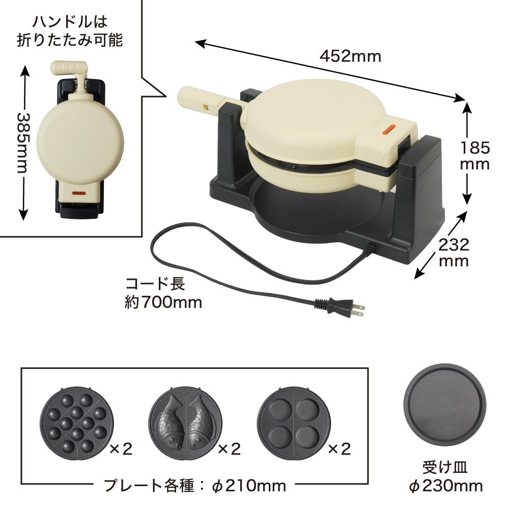 プレートや具材を変えることで、これ1台でたこ焼き、鯛焼き、大判焼き等が作れちゃいます。