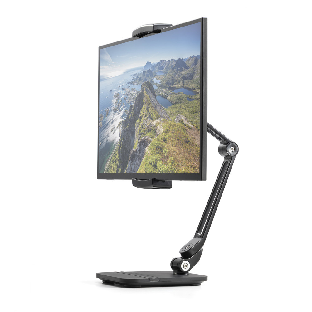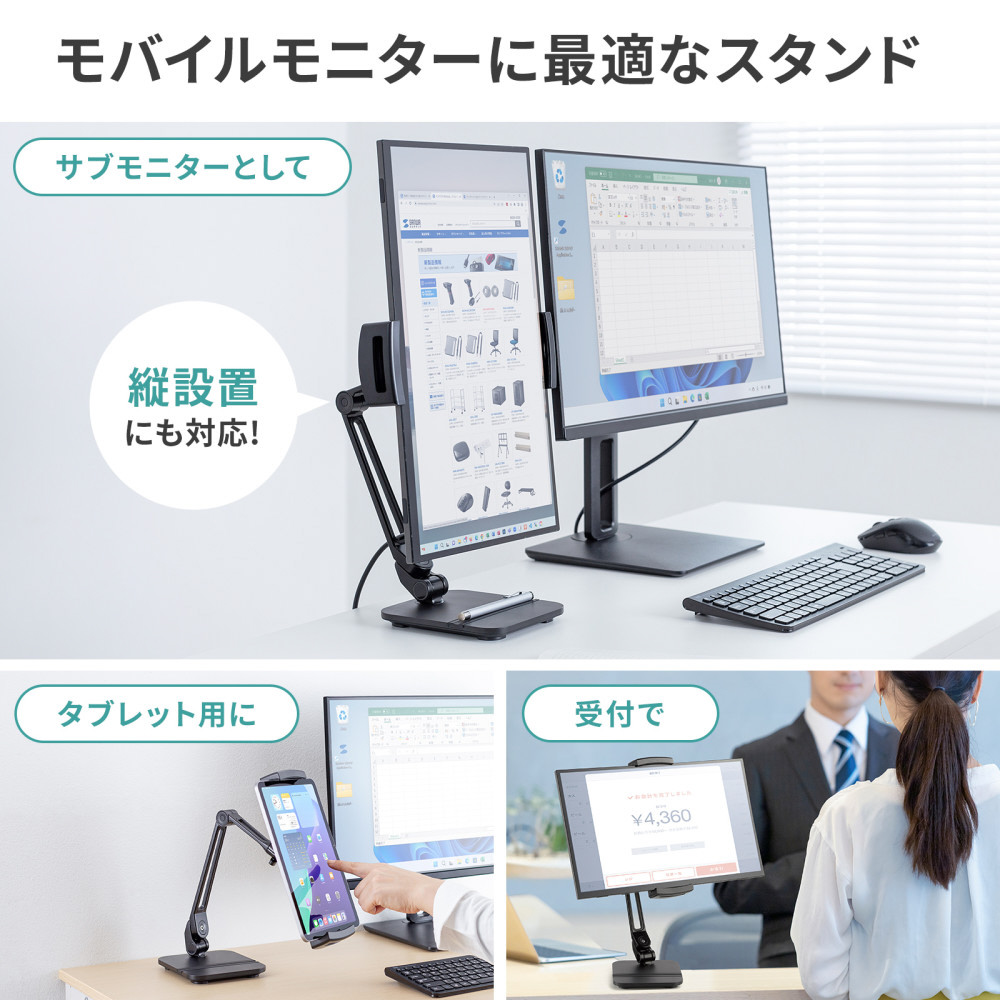 ■17.3インチまでのモバイルモニターやタブレットを設置できるタブレットアームスタンドです。