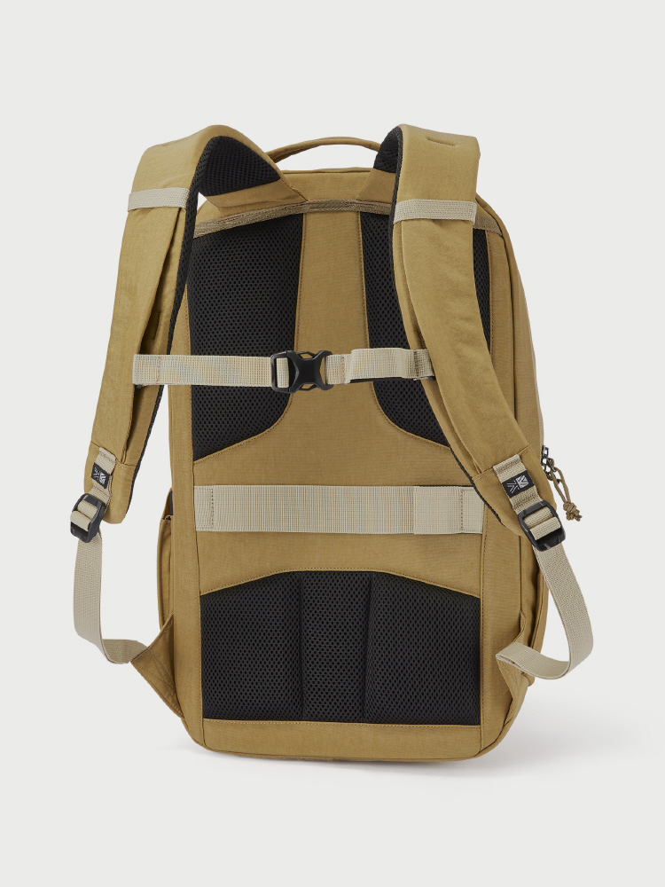 1999年から2005年にかけて使用されていたブランドのアーカイブロゴを配した限定デザイン。生地はリサイクル高密度ナイロン生地にワッシャー加工を施して自然なシワ感を表現。シンプルな見た目ながら豊富なポケットで、旅行や普段使いに充実の機能を装備。背面はキャリーケースのハンドルに通すことが可能。