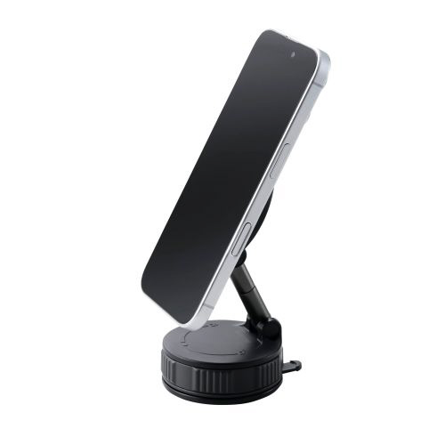 スマホホルダー 車 MagSafe対応 強力N52磁石 吸盤式 折りたたみ収納 ダッシュボード固定 360°回転 全機種対応 携帯スタンド ブラック P-CARS16BK