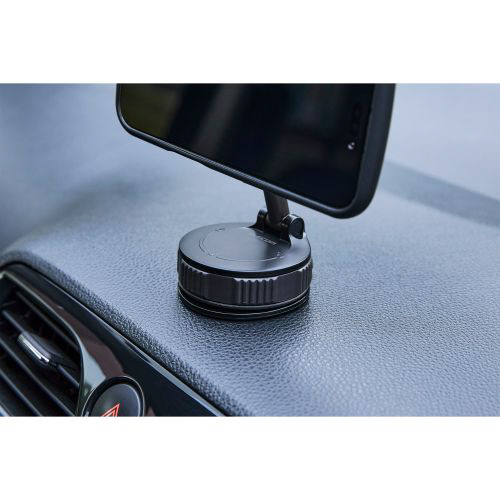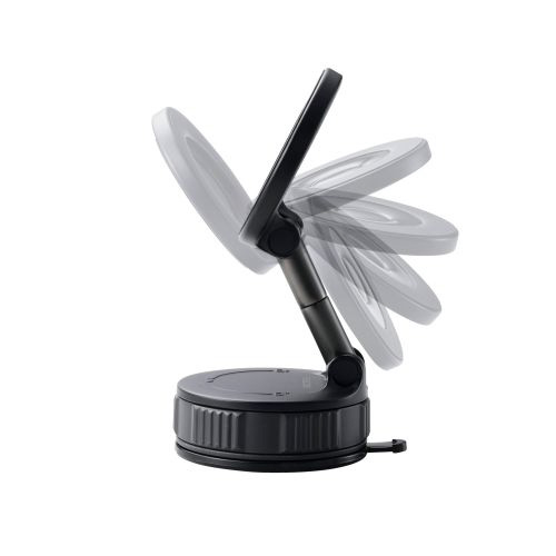 ドライブをもっと快適に。車のダッシュボードに簡単に取り付けられるスマホホルダーです。N52超強力ネオジム磁石でスマートフォンをしっかり固定し、運転中の振動や急ブレーキでも落下を防止。ダイヤルを回して真空状態にすることで浅めのシボ面にも強力に吸着できるゲル吸盤タイプです。使わないときは邪魔にならないよう、折りたたんでコンパクトに収納できます。