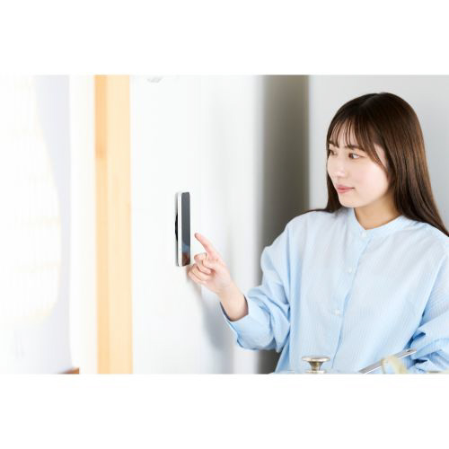 キッチンの壁に貼って、レシピ動画を見ながら料理を楽しめます。