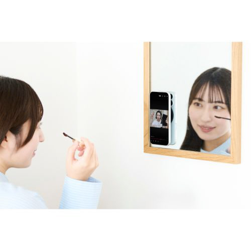 鏡に貼り付ければ、メイク中の画面チェックもスムーズに行えます。