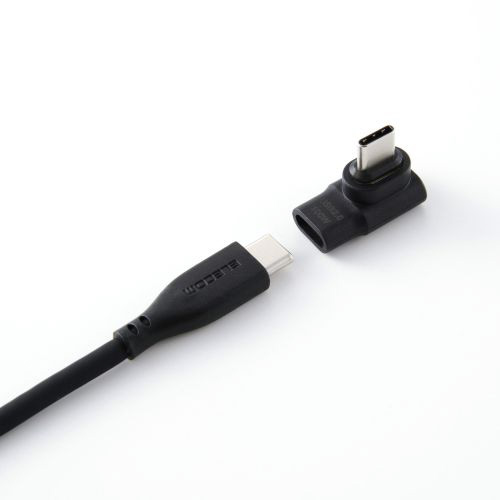 機器のUSB Type-Cポートに挿し込むだけで配線の向きを直角に変更できるので、狭い場所でも出っ張りを抑えてスッキリ配線できます。