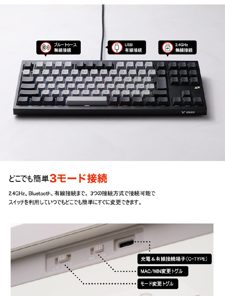 キーボード VARO(SILENT MINT) ブラック VM87-J-VSMB [有線・ワイヤレス /Bluetooth・USB]