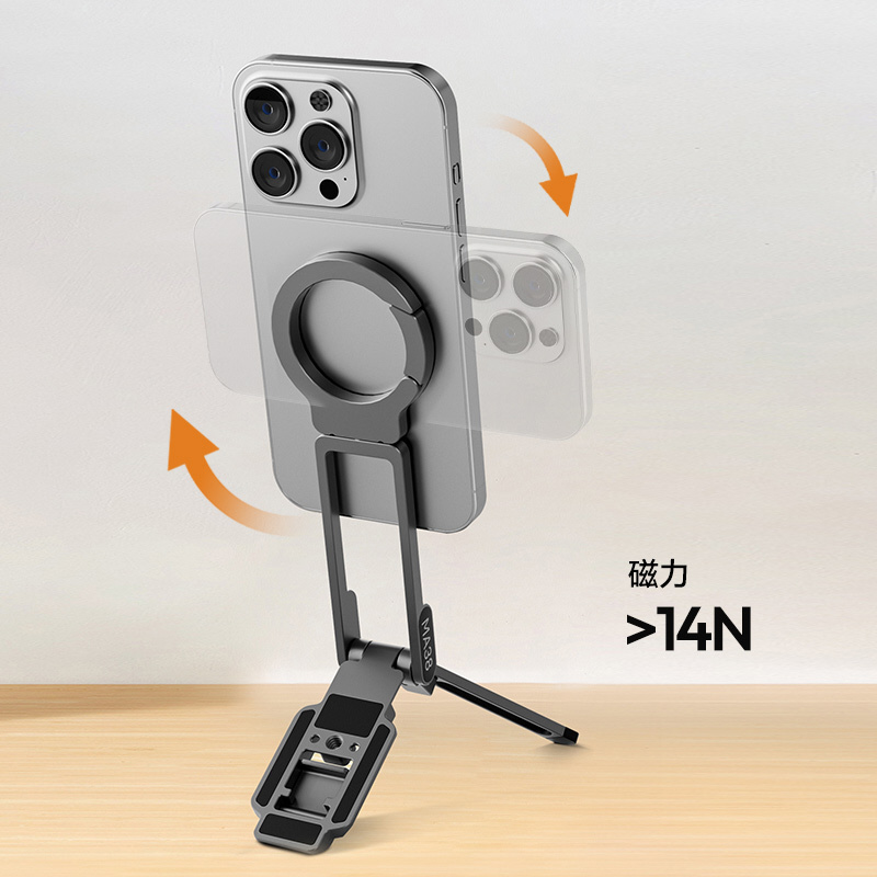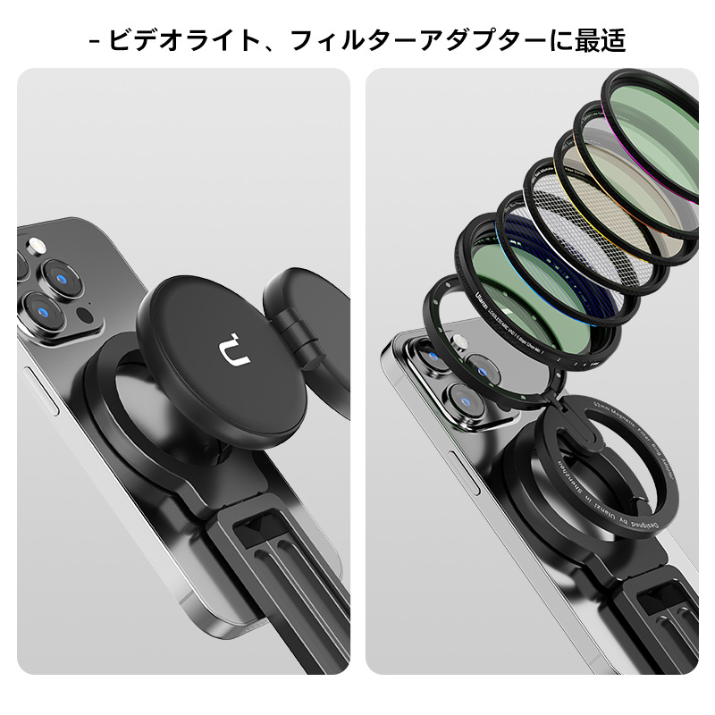 表面でスマホを吸着し、縦横をすばやく調整;裏面でアクセサリーを拡張し、簡単に美しい写真を収める。