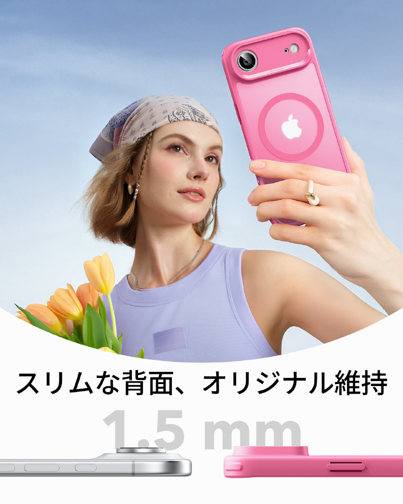 高純度アクリル素材が、iPhoneの洗練されたデザインラインとカラーを完璧に映し出すクリアさを実現します。さらに嬉しい「透明」の魅力として、ケース背面と本体の間にオリジナルの写真やメモ、お気に入りのシールを挟めるデザインに、思い出やこだわりのアイテムを透かして見せれば、世界でひとつだけのマイデザインに早変わります! 季節や気分で中身を入れ替えるだけで、手軽にオリジナリティを表現できます。軽量設計としっとりなめらかな手触りが、カスタマイズの楽しみと日常の使いやすさを両立させます
