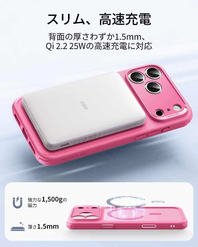 iPhone 17 Pro Max (6.9インチ)MagSafe対応、ミリタリーグレードハードケース ESR フロストピンク 1A86400501-Frosted Pink
