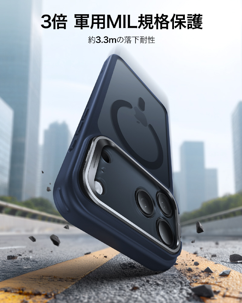 iPhone 17 Pro Max(6.9インチ)MagSafe対応、隠れスタンド付き、ミリタリーグレードケース フロストブルー 1A86800401-Frosted Blue