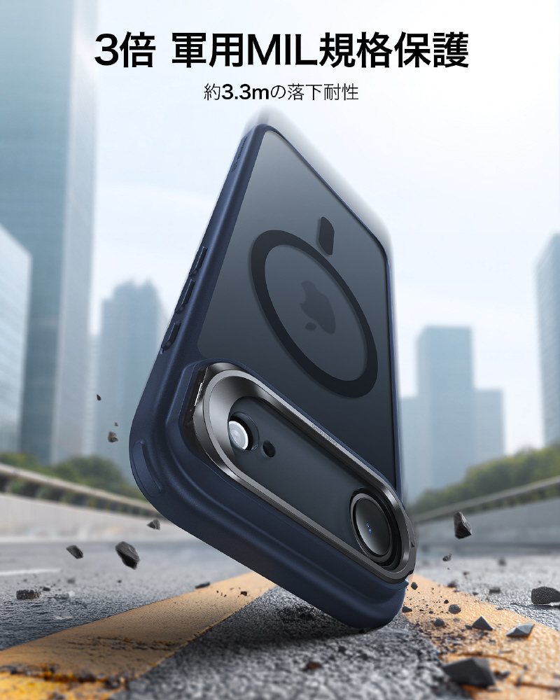 iPhone Air (6.5インチ)MagSafe対応、隠れスタンド付き、ミリタリーグレードケース フロストブルー 1A86600401-Frosted Blue