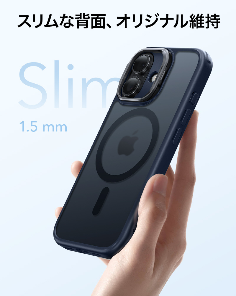 iPhone 17 (6.3インチ)MagSafe対応、隠れスタンド付き、ミリタリーグレードケース フロストブルー 1A86500401-Frosted Blue