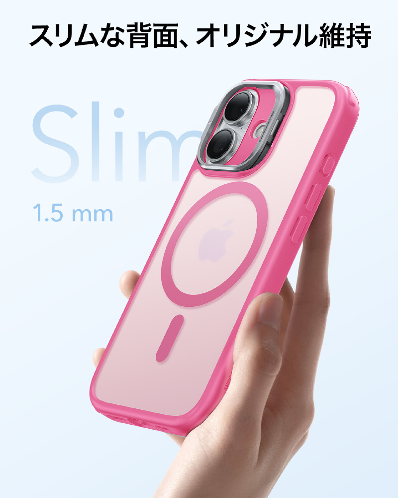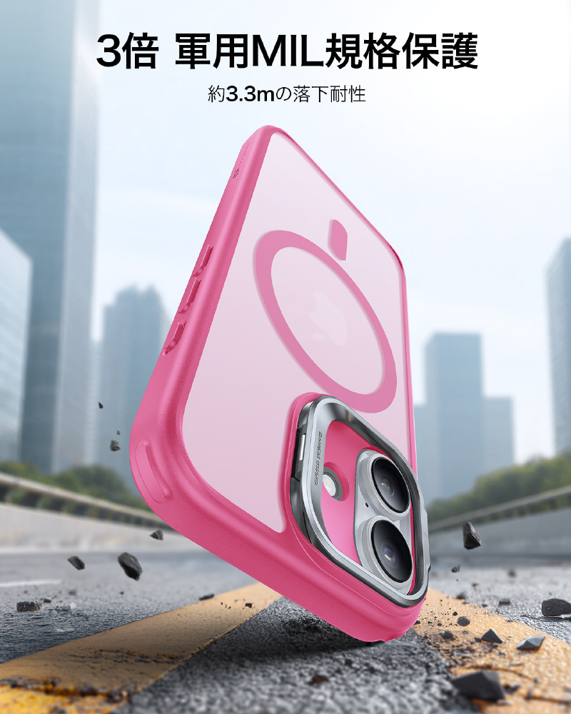 iPhone 17 (6.3インチ)MagSafe対応、隠れスタンド付き、ミリタリーグレードケース フロストピンク 1A86500501-Frosted Pink