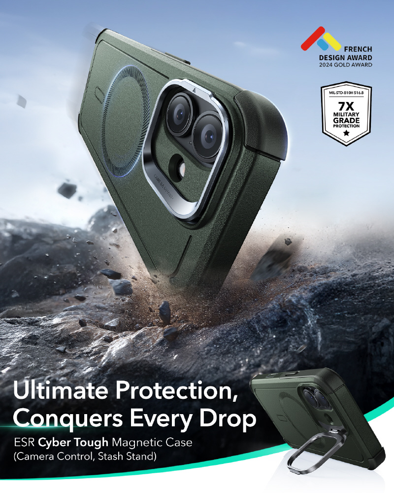 iPhone 17(6.3インチ)MagSafe対応、隠れスタンド付き、3層構造衝撃吸収ハイブリッドケース オリーブグリーン 1A87900401-Olive Green
