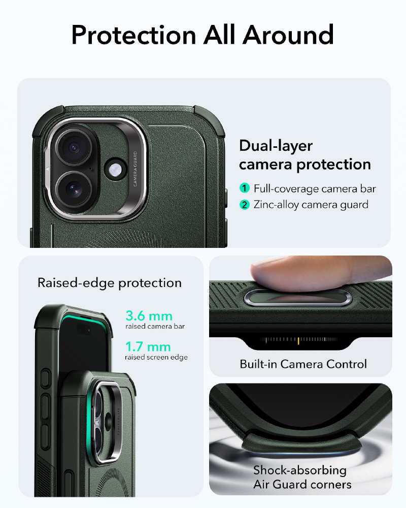 革新的なカメラコントロールボタンを専用カバーで守りながら、指先に伝わるプロ級の操作感をそのまま体感できます。スライド時の滑らかな動きから押圧時の確かな反発感まで、本体と遜色ない精密なタッチレスポンスを実現します。ボタン周辺の隙間を完全に封鎖する設計で、ほこり侵入を徹底シャットアウトします。精密センサーを埃のストレスから守り、シャッターチャンスを逃さない快適操作を長く支えます