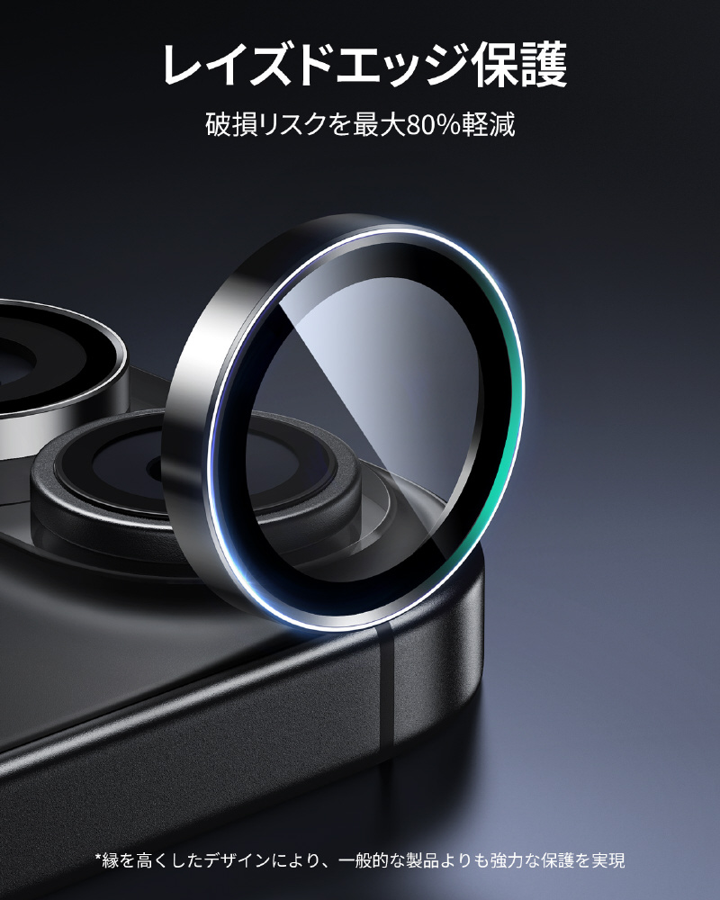 超薄型で超透明な強化ガラスは傷がつきにくく、レンズが損傷から保護しながら、透明度抜群で高画質な写真やビデオをお楽しみいただけます。