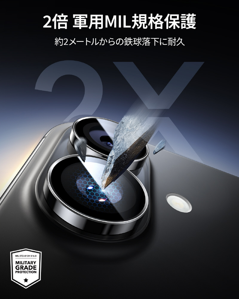 頑丈な強化ガラスでレンズを傷や衝撃から保護し、いつでも高品質の写真を。