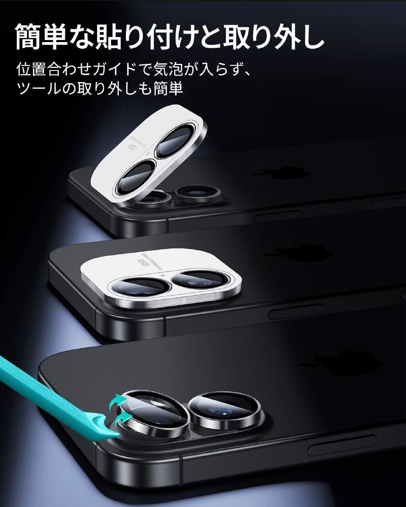 iPhone 17/16/16 Plus (2眼)対応 ミリタリーグレード強化ガラスカメラレンズフィルム ブラック 1D73100204-Black