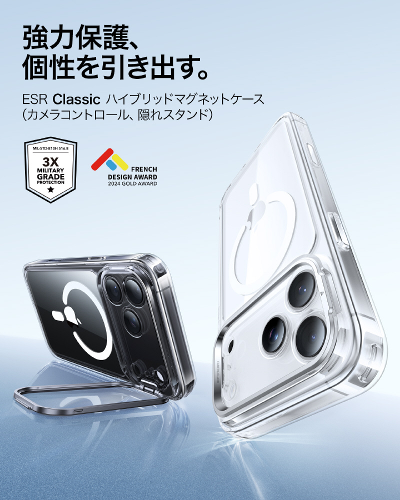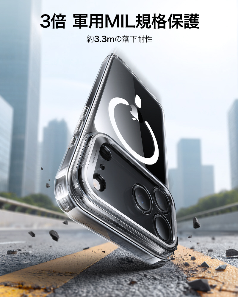 iPhone 17 Pro Max(6.9インチ)MagSafe対応、隠れスタンド付き、ミリタリーグレードケース ESR クリア 1A86800101-Clear