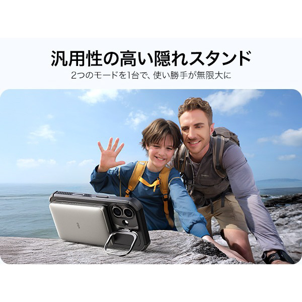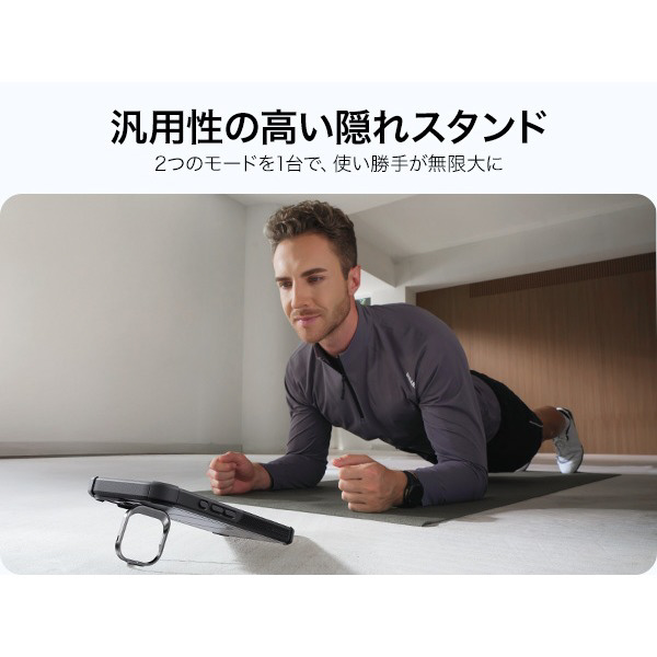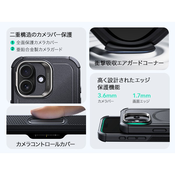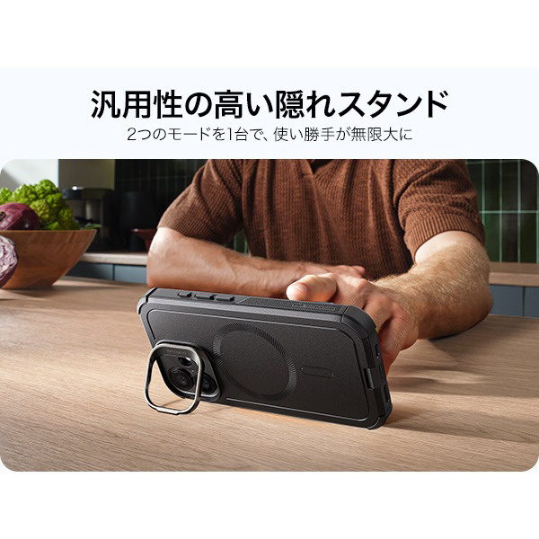 iPhone 17(6.3インチ)MagSafe対応、隠れスタンド付き、3層構造衝撃吸収ハイブリッドケース ブラック 1A87900101-Black